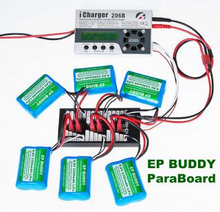 First off, parallel charging can be done with LiPo, LiFe, or Li-Ion batteries ONLY. Do NOT attempt to use this technique with NiCad/NiMH batteries, etc., as they use a peak voltage (ΔV) detection charge technique rather than a constant current/constant voltage (CC/CV) charge technique. A battery chemistry capable of being charged via the CC/CV technique is a must for parallel charging to be safe and effective.
